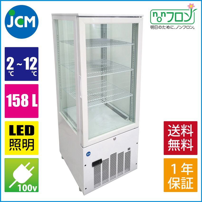 新型・JCM (158L) 4面ガラス・冷蔵ショーケース(2℃〜12℃)LED照明付き 新・JCMS-160